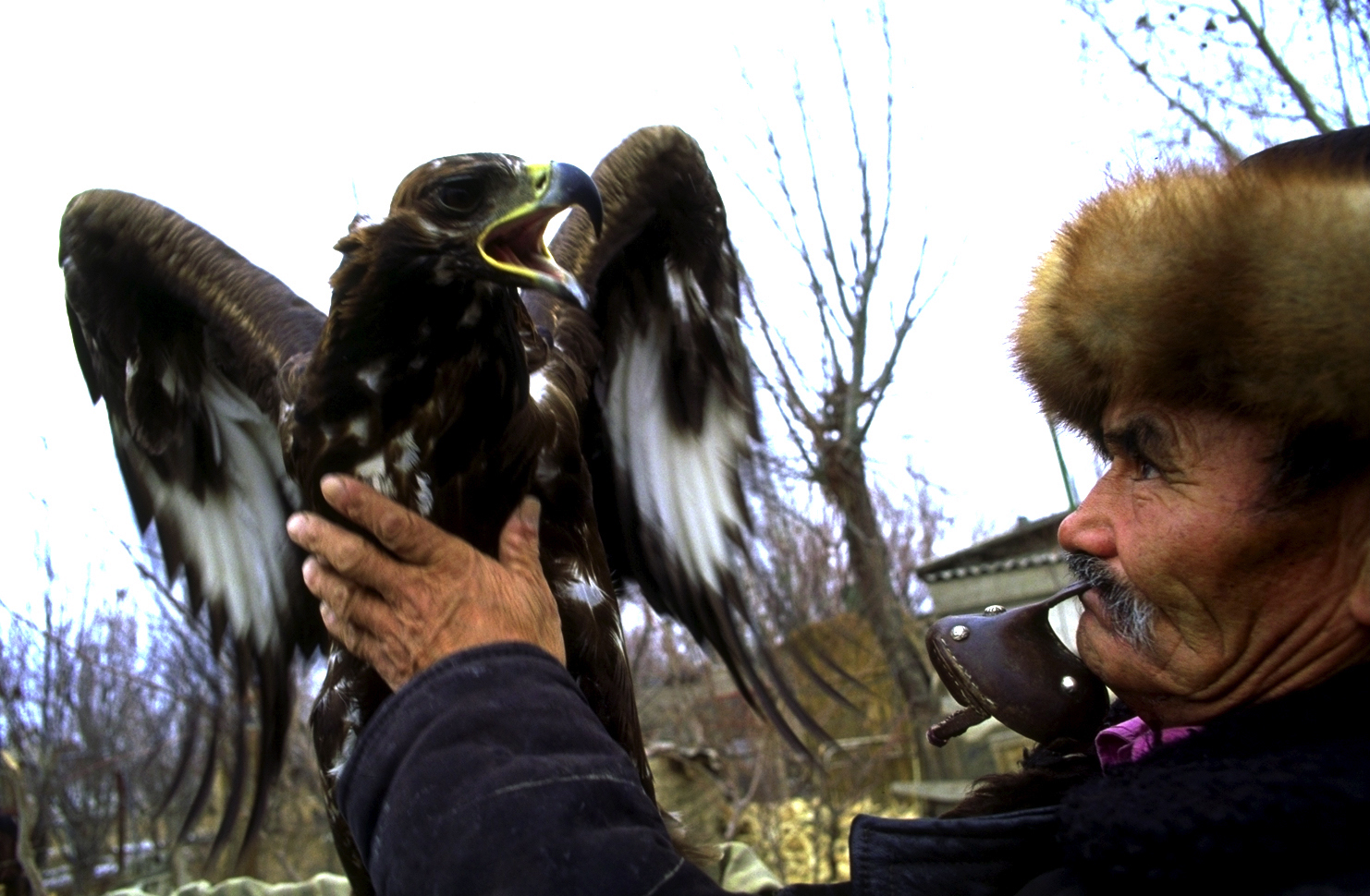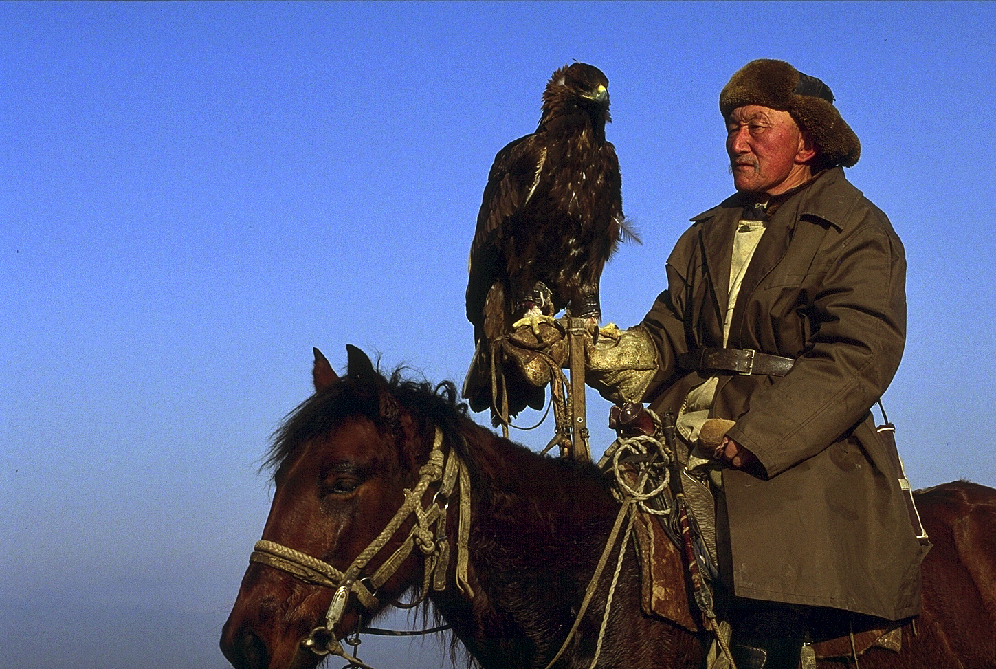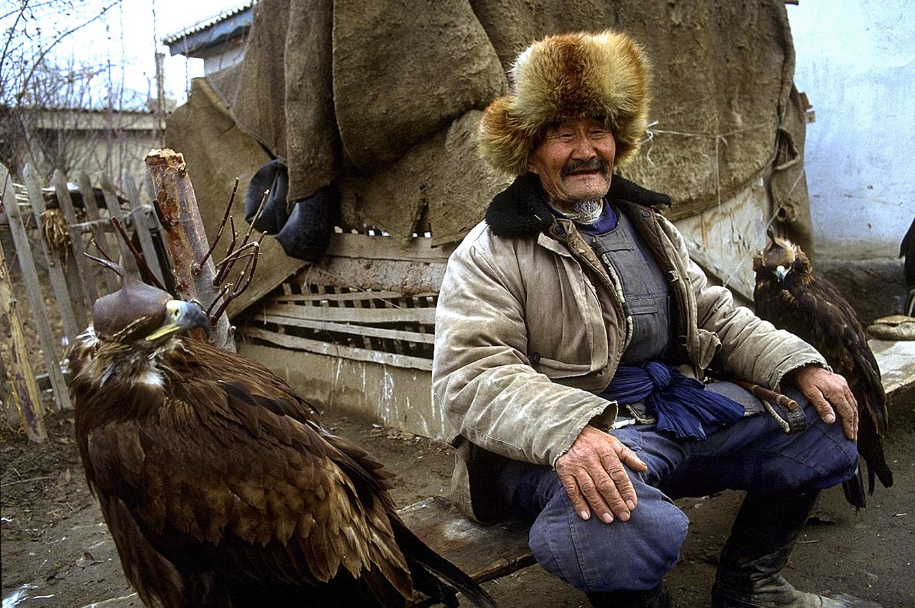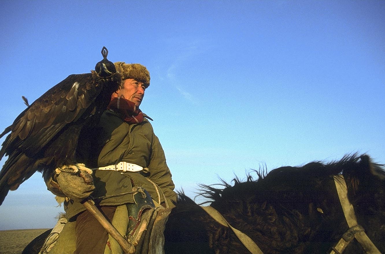 Fauconniers du Kazakhstan qui pratiquent la chasse au loup à l’aigle, à l’aigle et portraits d’oiseaux…