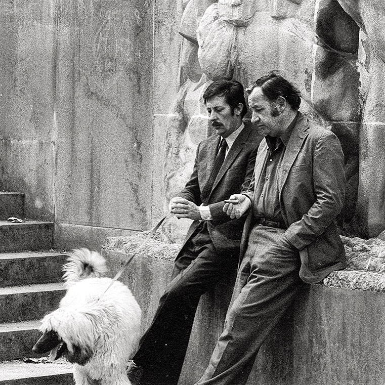 Noiret Rochefort pendant le tournage de l’Horloger de Saint Paul – Parc de la Tête d’Or Lyon 1974